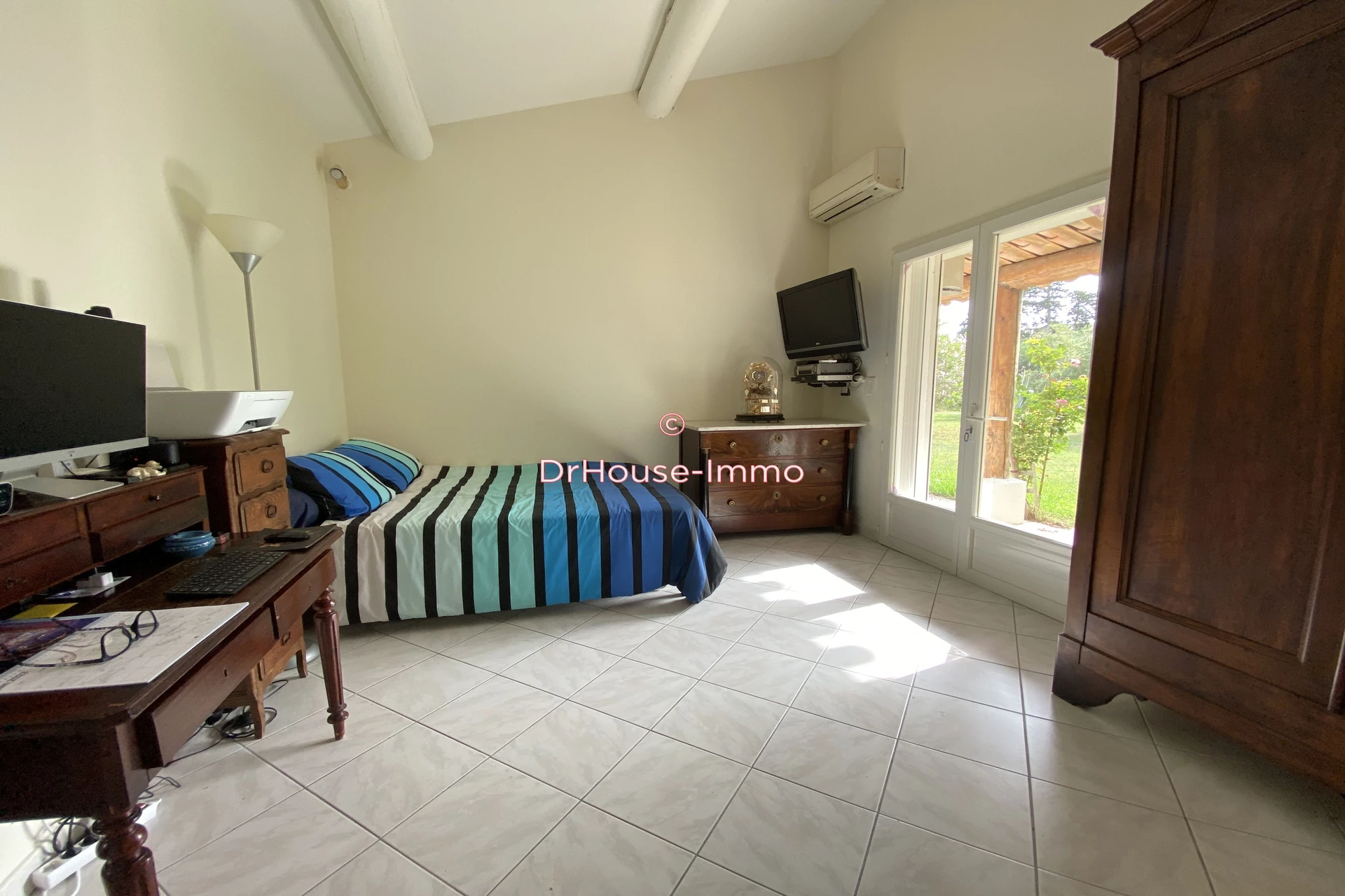 Double vitrages et volets roulants, climatisation réversible et la classe énergie est en C.